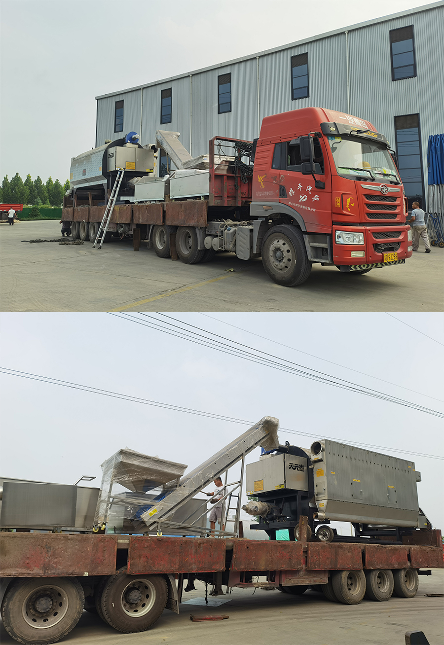 安徽750炒機一臺,爬坡皮帶一臺,小料車兩臺發(fā)貨