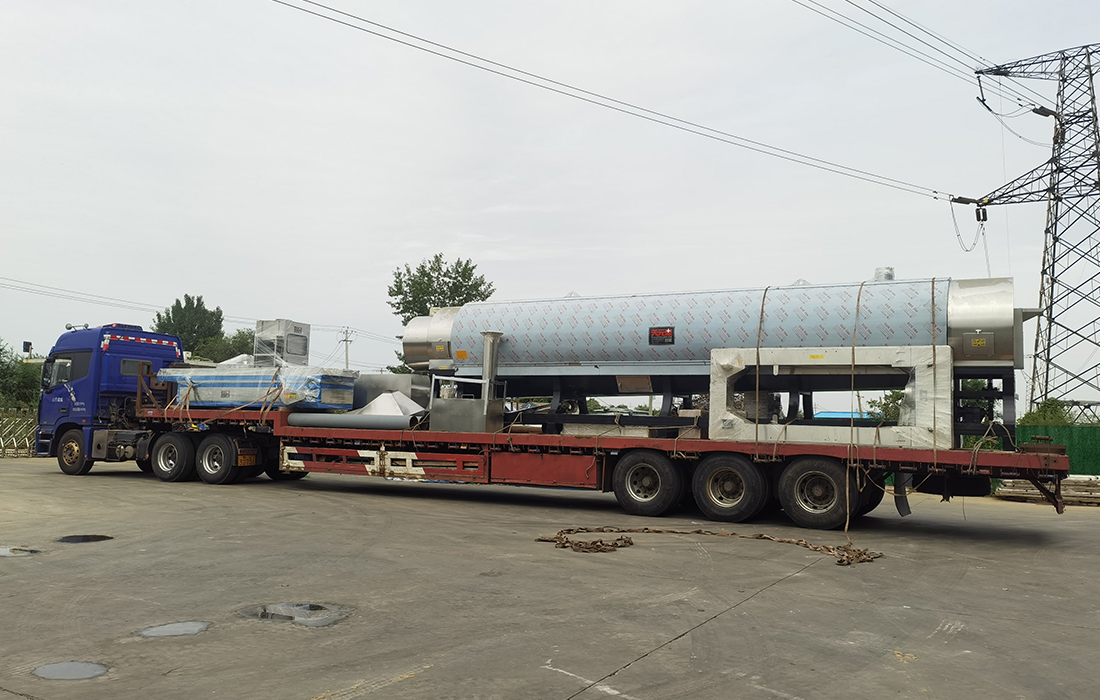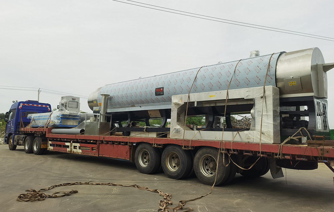 山東濰坊壁流式花生炒機(jī)R45型(加高20公分)100型4米冷卻床,中型多級(jí)花生篩選機(jī),330*42提升機(jī),裝車發(fā)貨