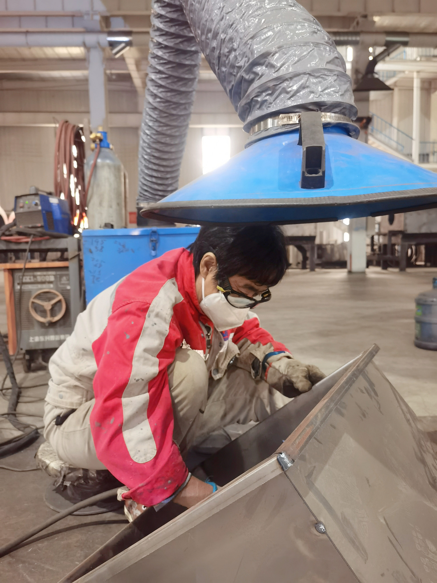 “有人覺得這是男人干的活兒。但女工師傅絲毫不輸男職工。焊機轟鳴,焊花飛濺,光影交織中映襯出一派火熱的作業(yè)現(xiàn)場,電焊面罩下是被熱浪灼紅的皮膚,我們一線