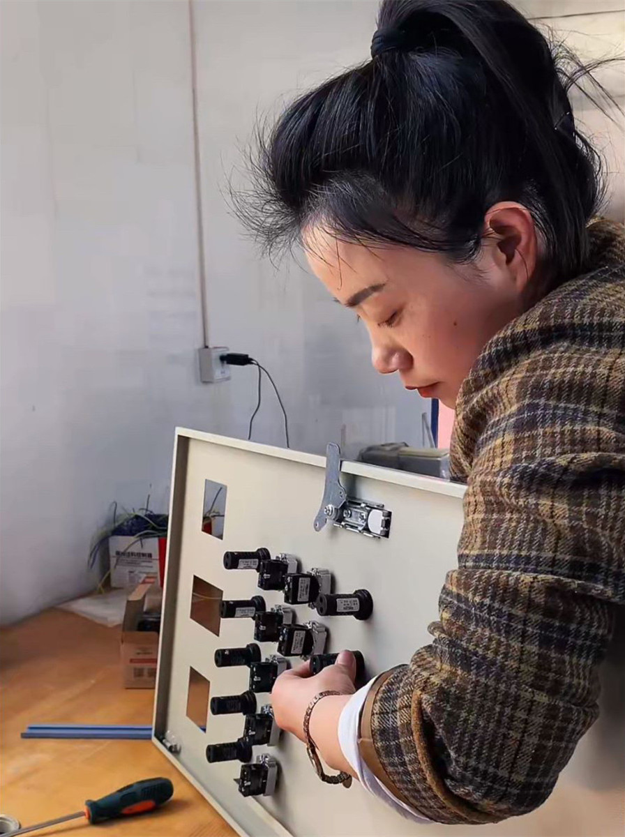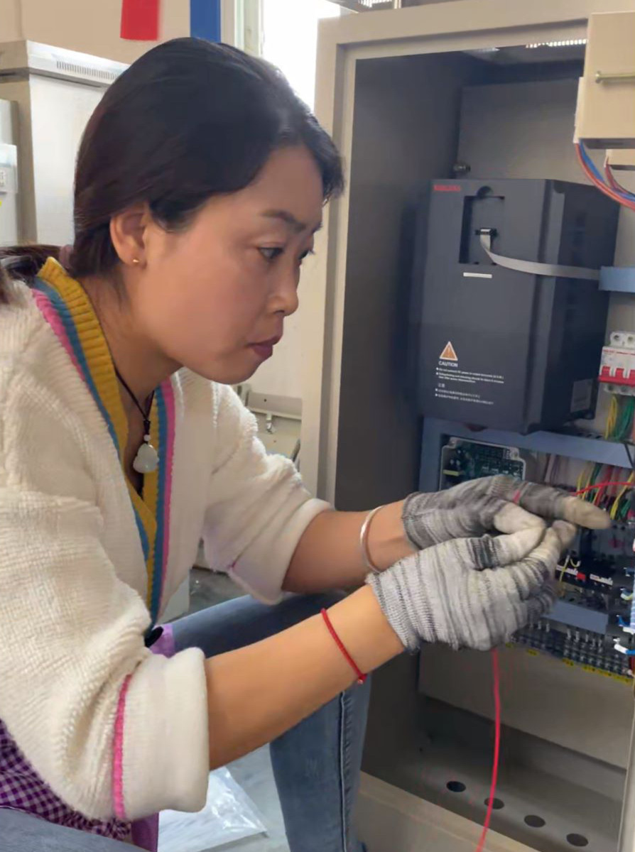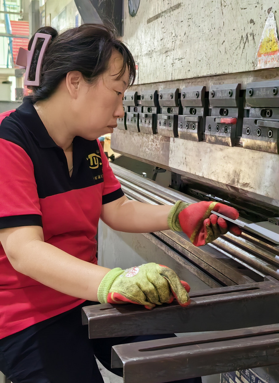 車間的女工張花果師傅、鄧立坤師傅除了熟悉作業(yè)的壁厚、角度,有時還要一直保持蹲姿、站姿干活兒,這在她們身上是常有的事,但她們沒有一個人退縮。深入車間,折彎的女工趙云平師傅正在認真的作業(yè),折彎需要一定的專業(yè)技術(shù),更需要強大的專注力,在悶熱的車間里,她依然拿出十二分的狀態(tài)來對待工作。